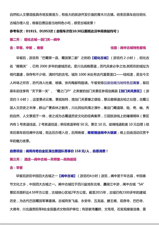 开启【五一黄金周阆中双动旅游专列】全国落地大散拼欢迎您!