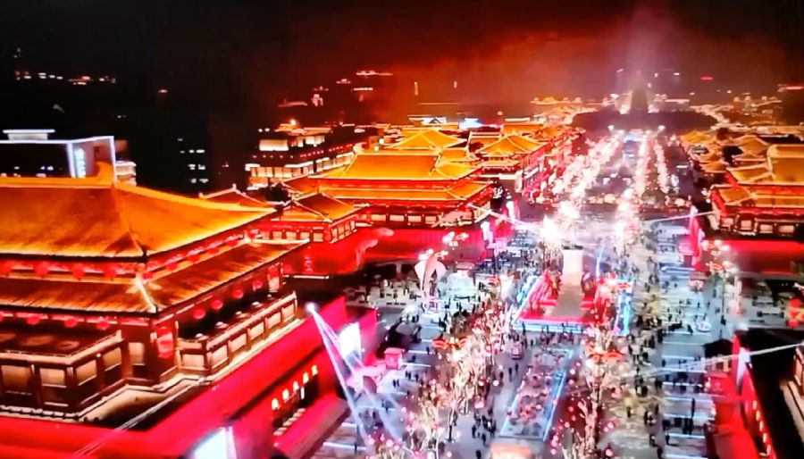 大唐不夜城位于陕西省西安市雁塔区的大雁塔脚下,长2100米,东西宽500米,总建筑面积65万平方米。以盛唐文化为背景,唐风元素为主以展示盛唐文化。耗资50亿打造,是全球20个热门旅游目的地。
