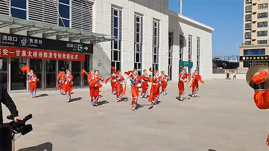 大峡谷”旅游专列欢迎仪式,让我们以热烈的掌声欢迎古城西安游客朋友;欢迎全国各地的朋友们!