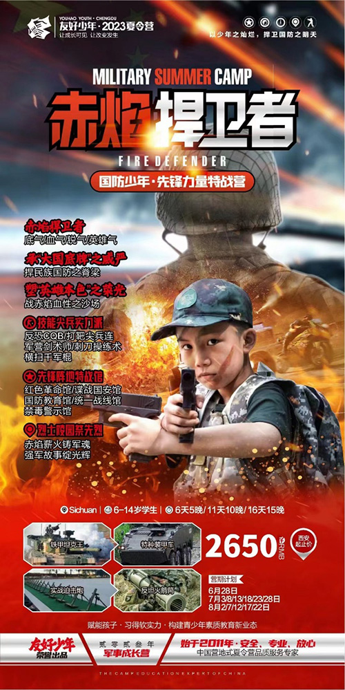 家长放心:1.全封闭的国家国防教育示范营地,老师与营员同住,24小时安全管理。