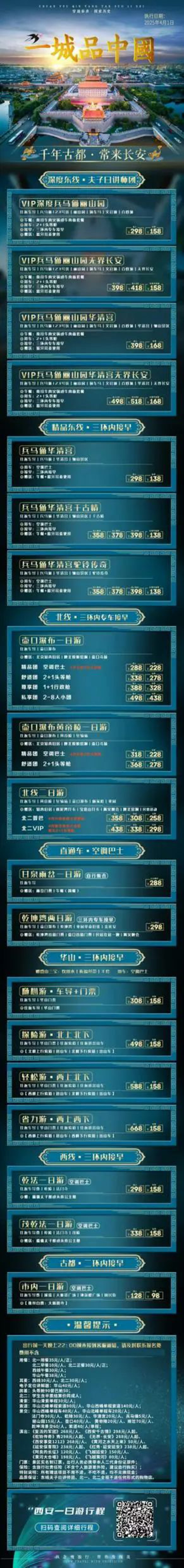01、点击长按西安一日游行程二维码!更多系列一日游产品日程明细展现!供您咨询参考决策。