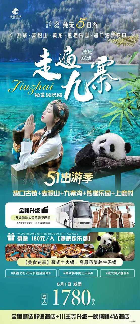 三、【 五一黄金周的成都 、 重庆、 九寨沟 、甘南、 宁夏、 内蒙 、青海的全国精华旅游线路产品】